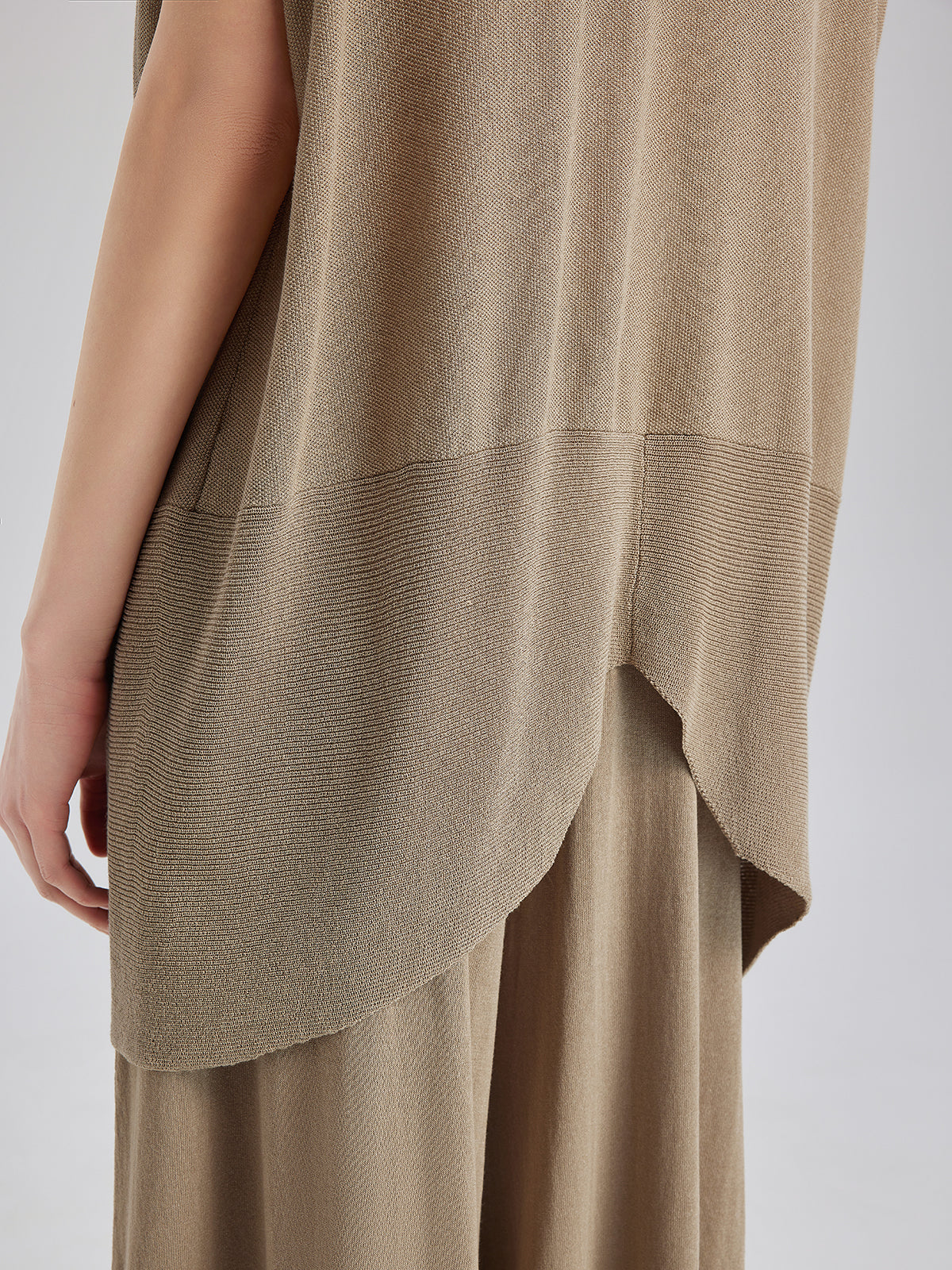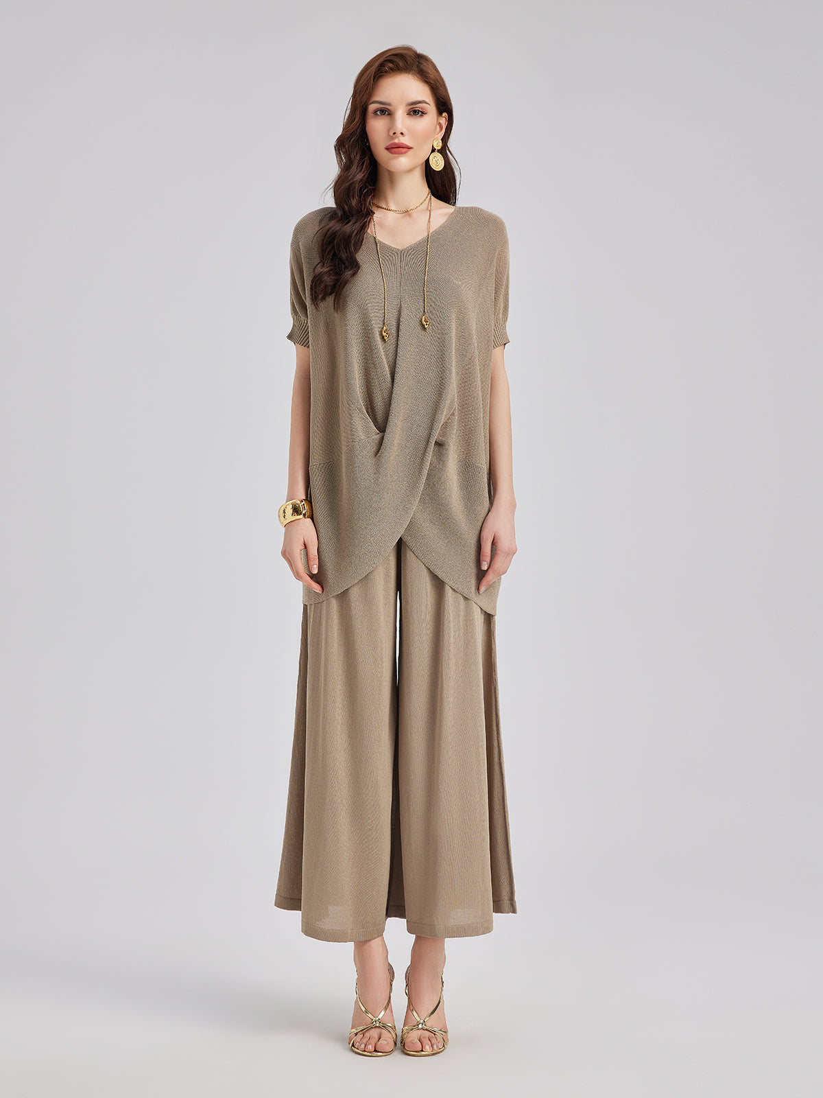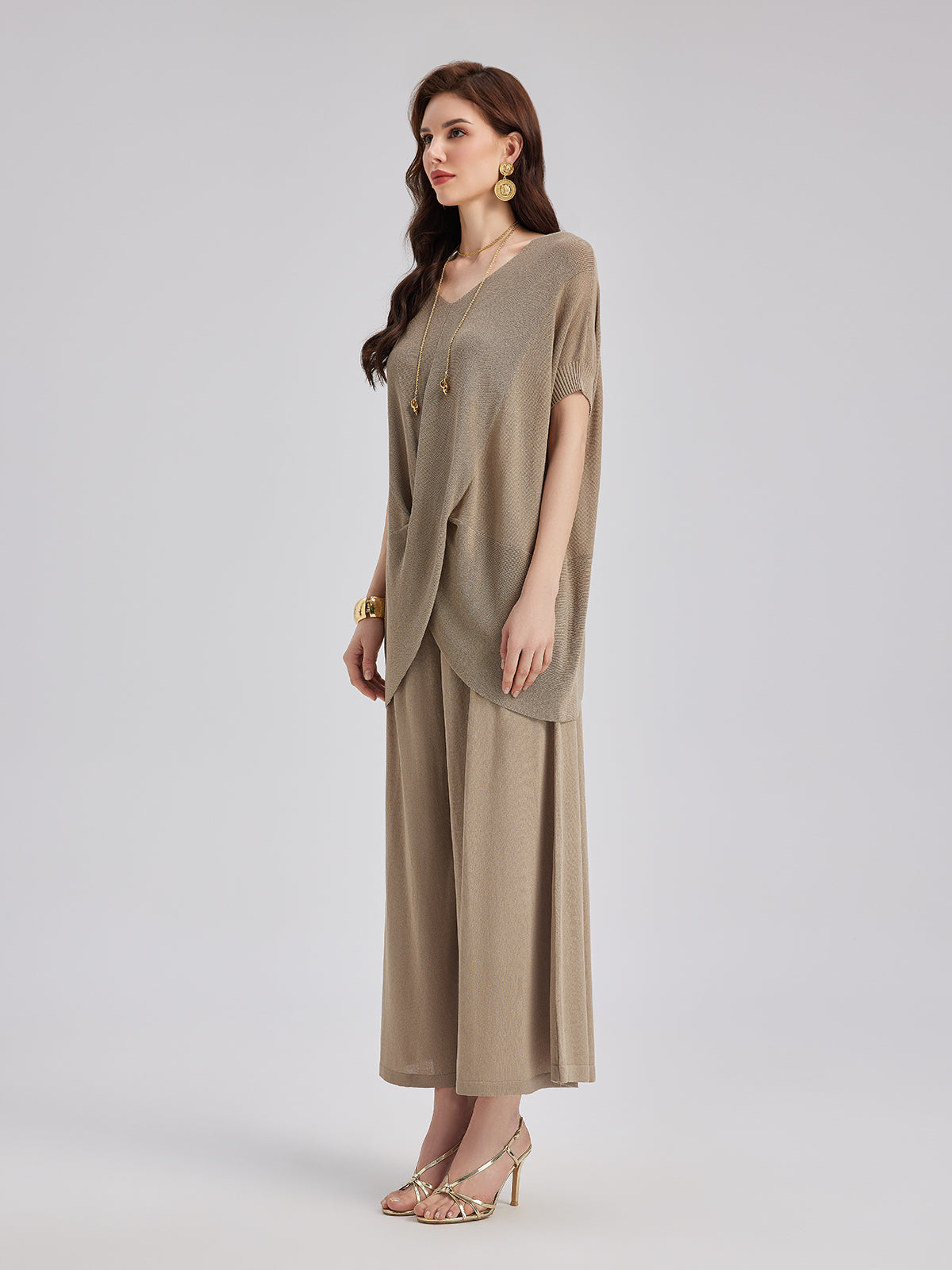 Enjoy unmatched comfort with these pants crafted from soft, breathable knit fabric that offers excellent stretch. Asymmetrical French-style cross hem elongates the body. Batwing sleeves suit all body types. The elastic waistband ensures easy wear and a perfect fit, while the wide-leg design enhances comfort and flatters any body type. Convenient side pockets add practicality, making them ideal for casual, daily, and outdoor activities.