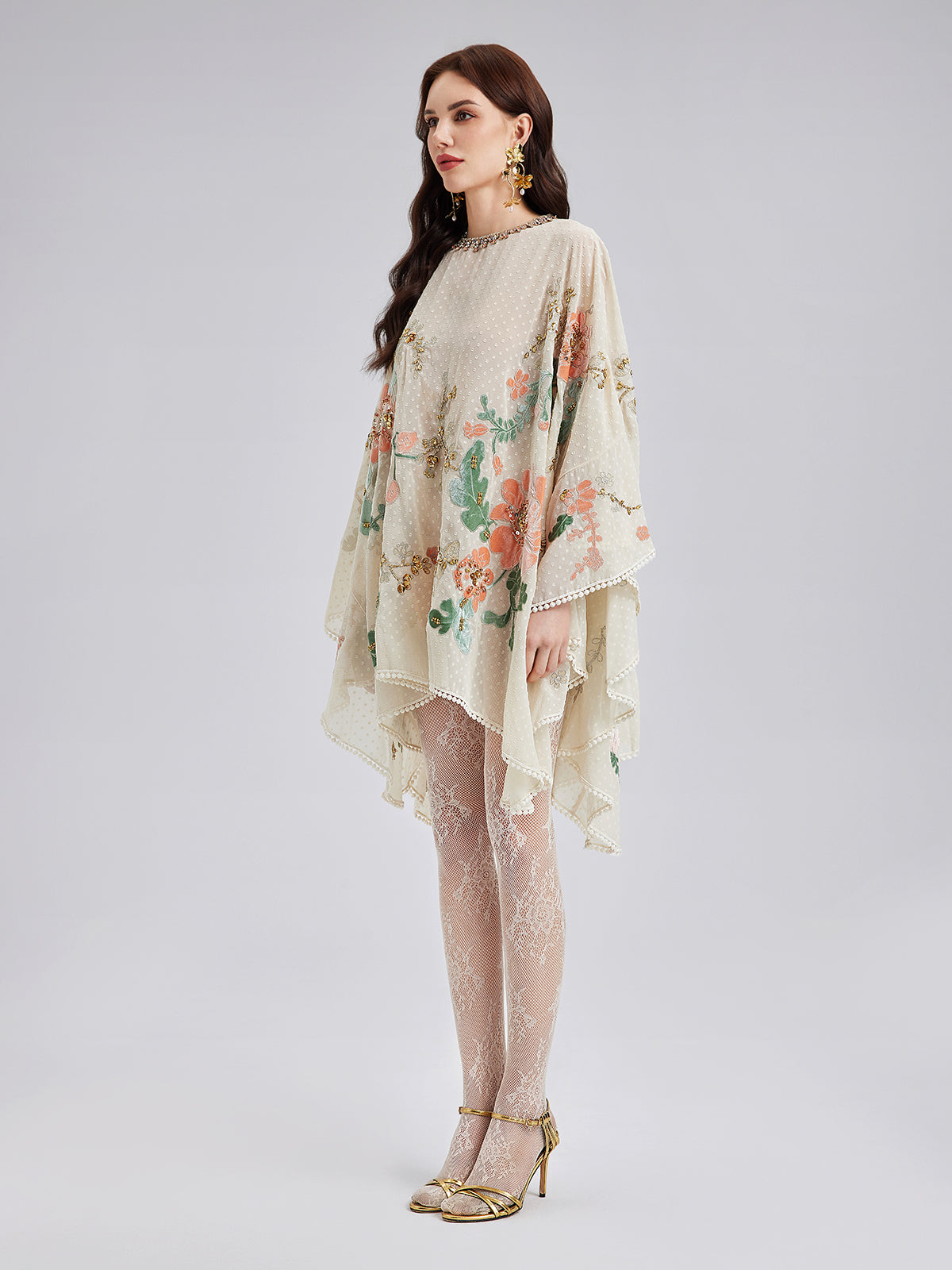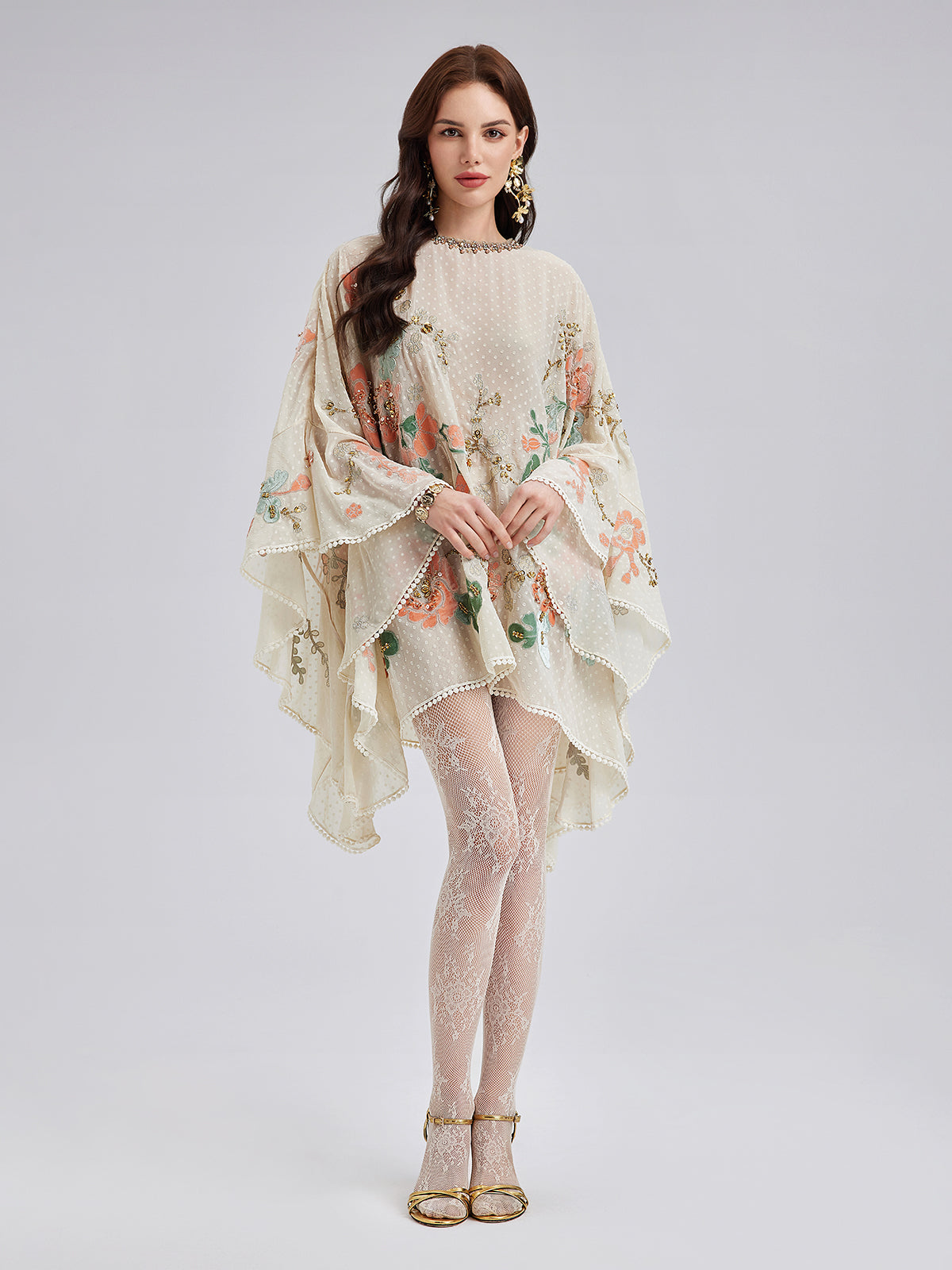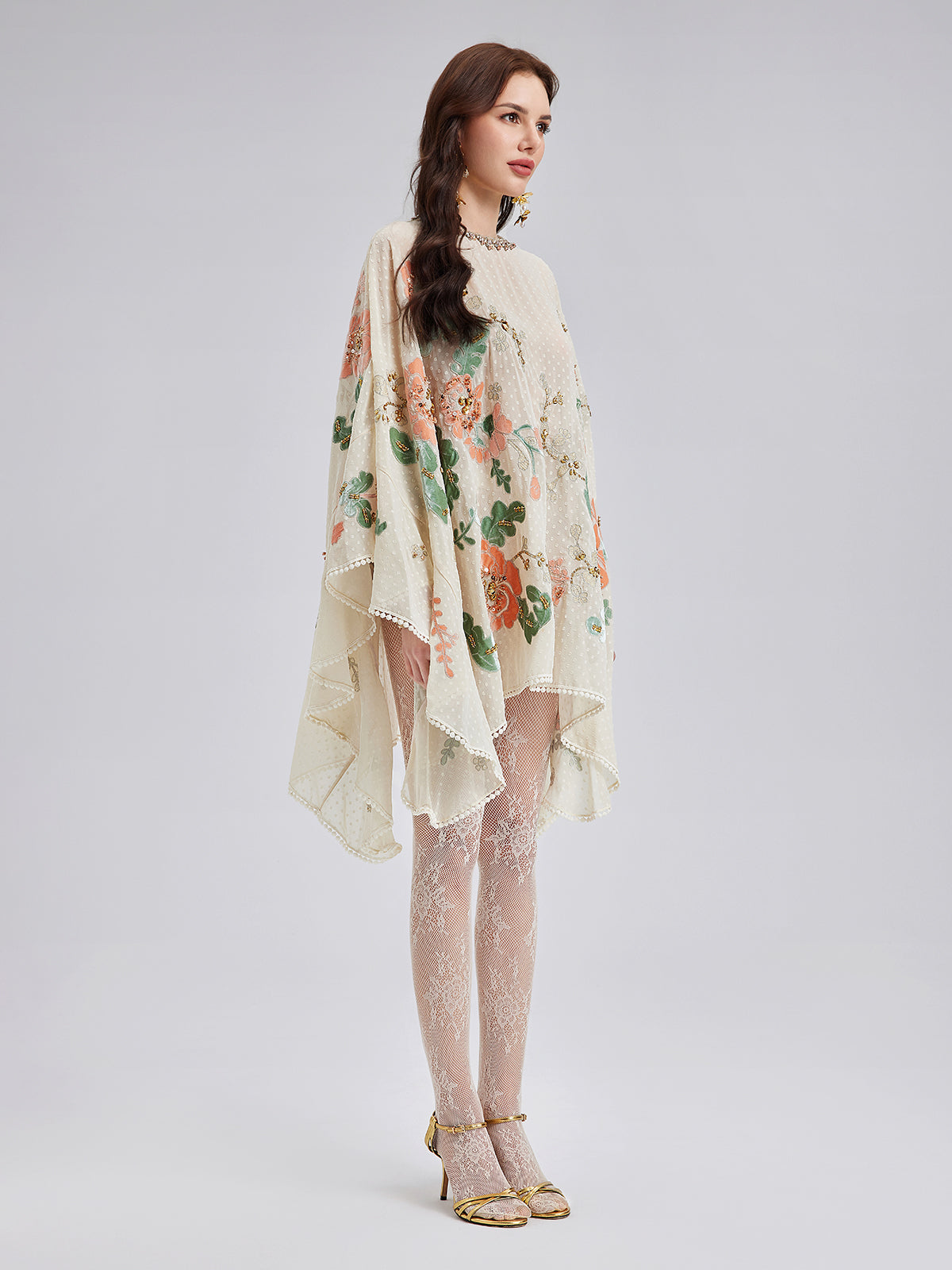 Intricate embroidery and hand-sewn beads create a rich, layered design with vibrant colors. A beaded neckline adds a luxe touch, while the asymmetrical hemline brings movement and modernity. Crafted from premium fabric for both elegance and comfort.