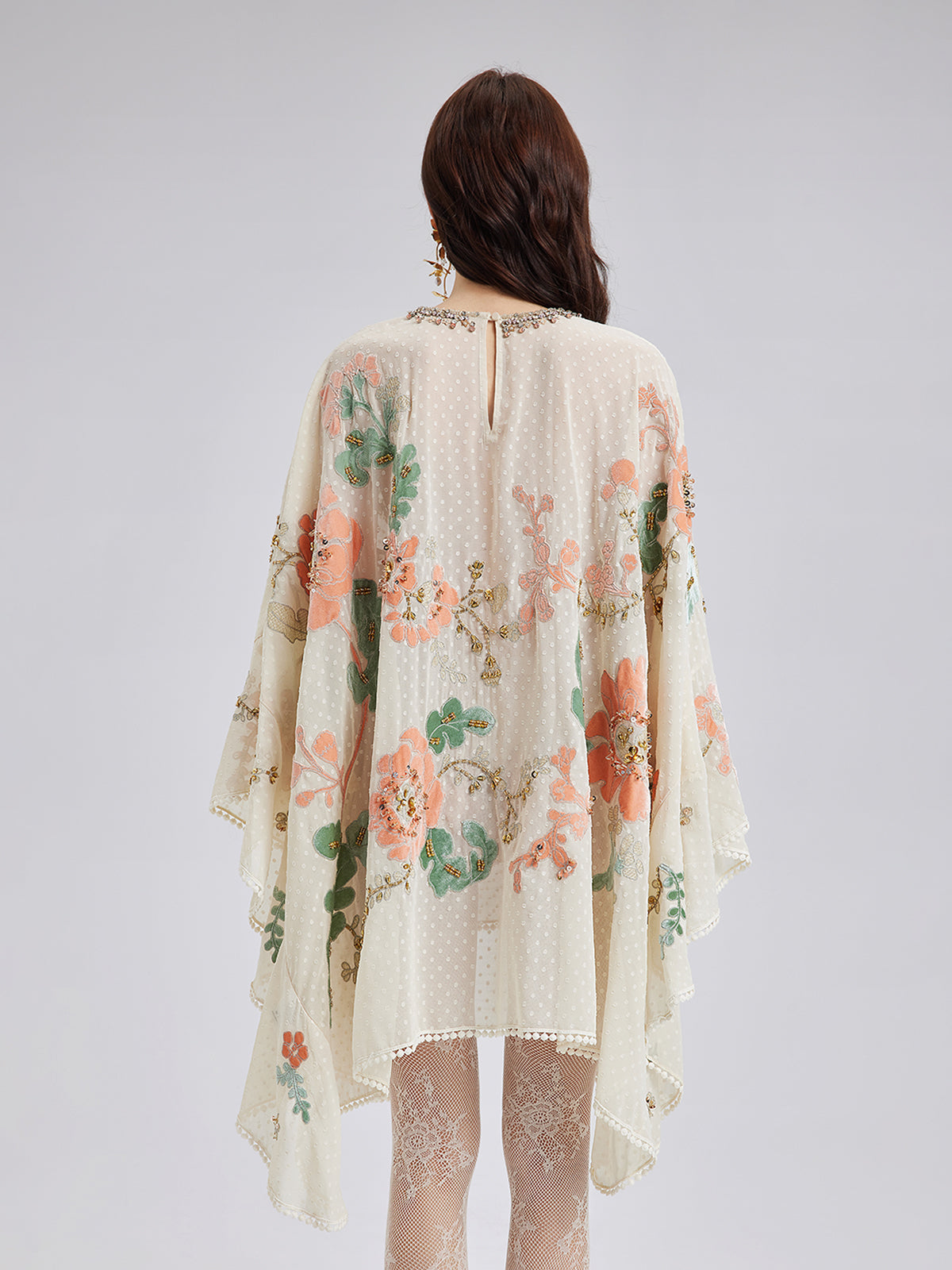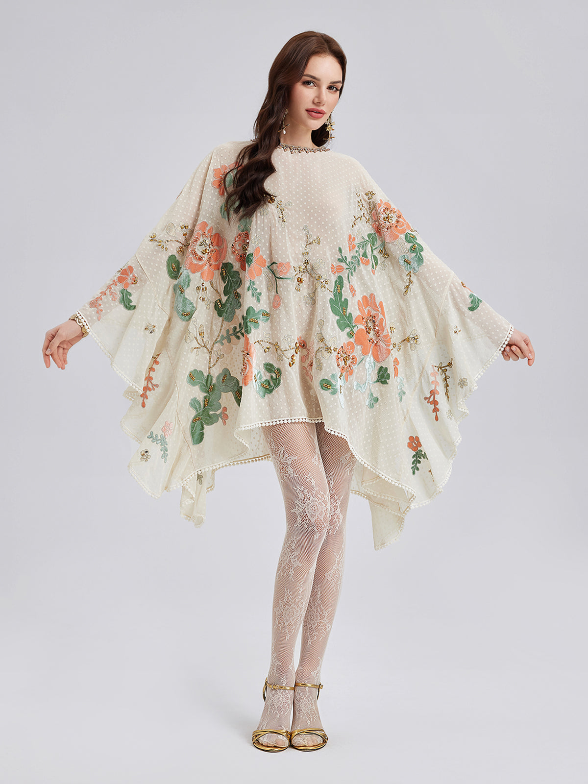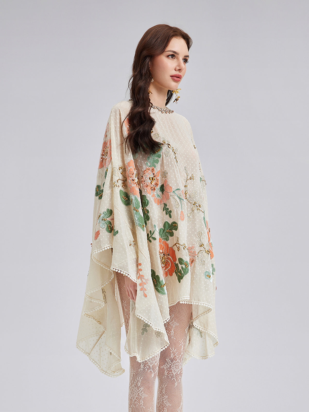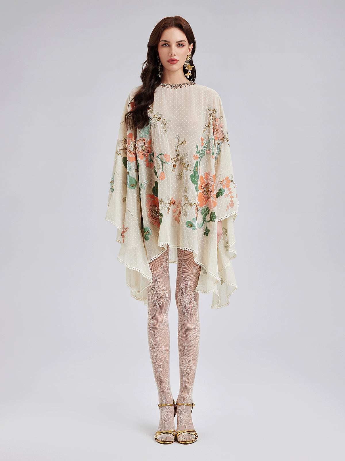 Intricate embroidery and hand-sewn beads create a rich, layered design with vibrant colors. A beaded neckline adds a luxe touch, while the asymmetrical hemline brings movement and modernity. Crafted from premium fabric for both elegance and comfort.