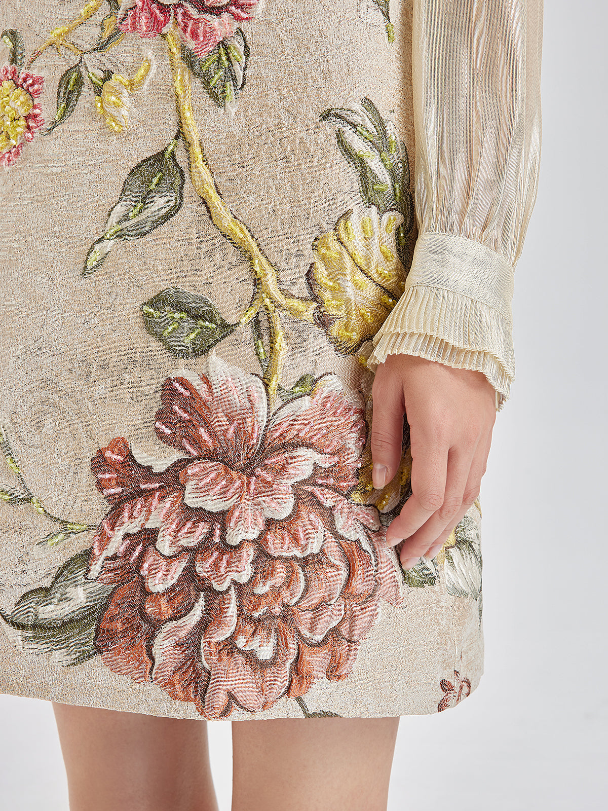 Hand-Beaded 3D Floral Jacquard Tank Dress