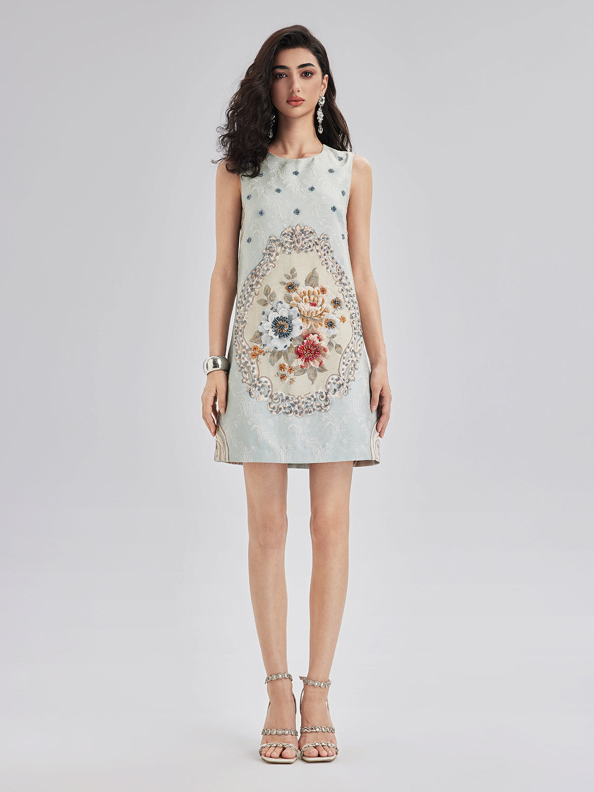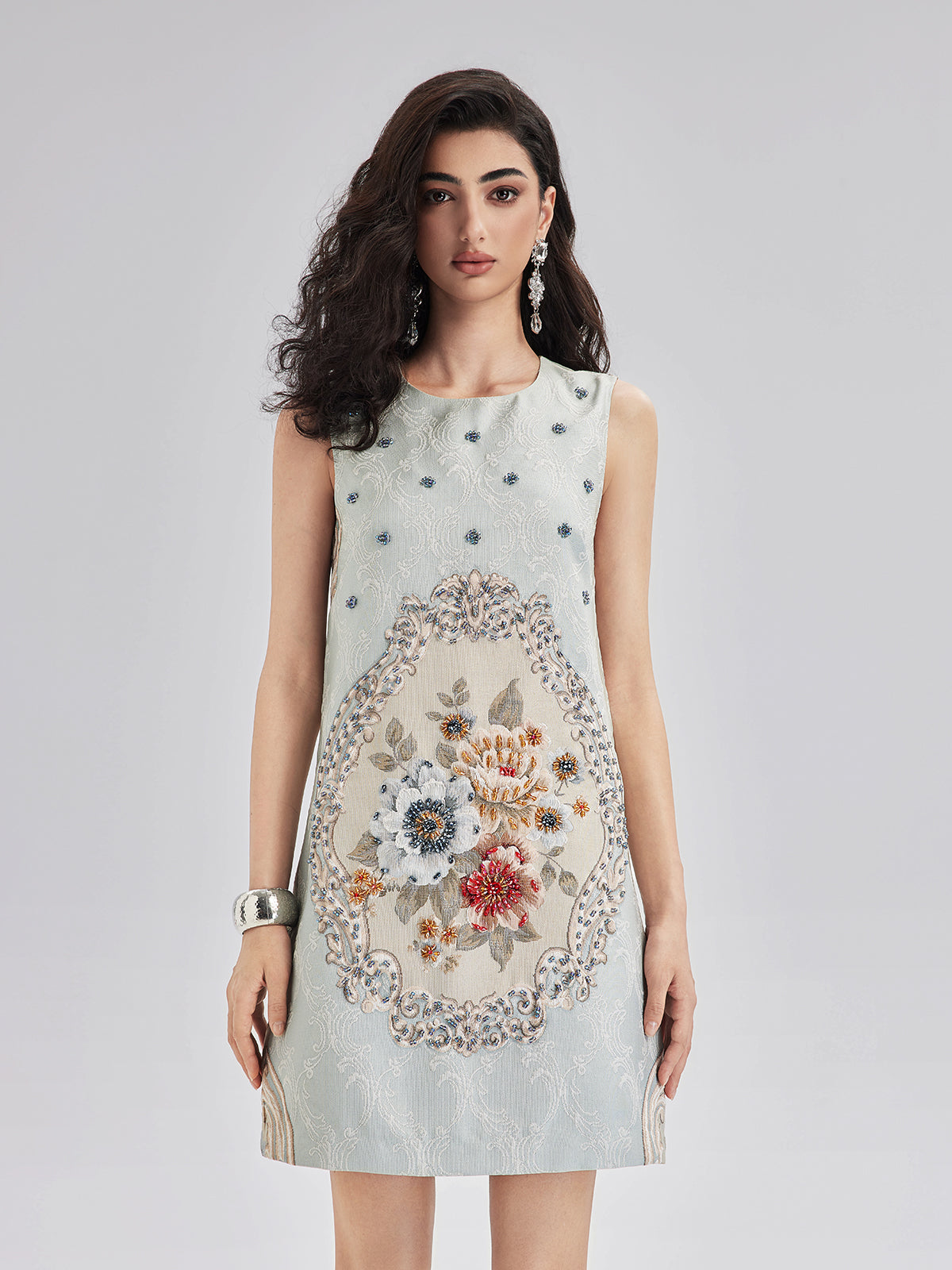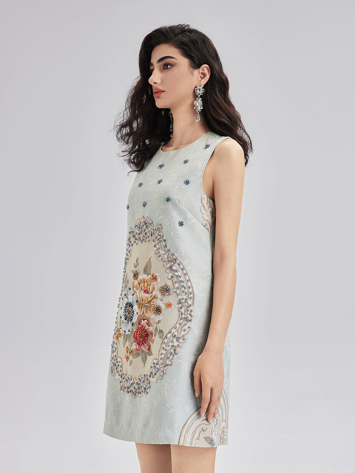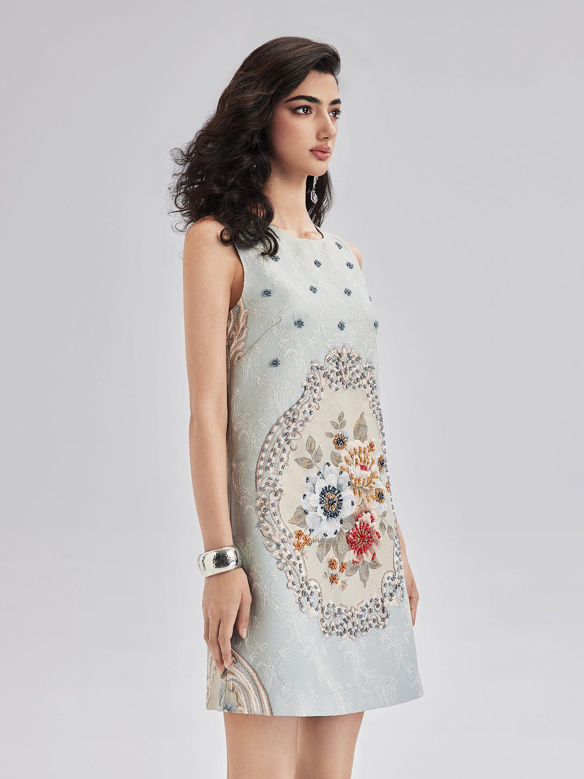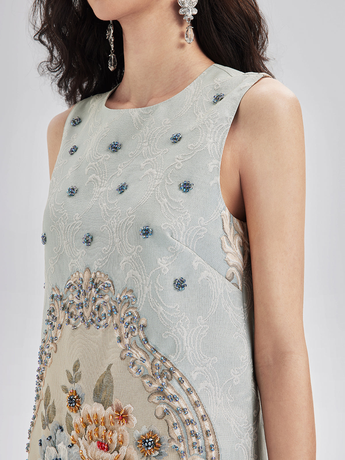 Hand-Sewn Beaded Floral Tank Dress